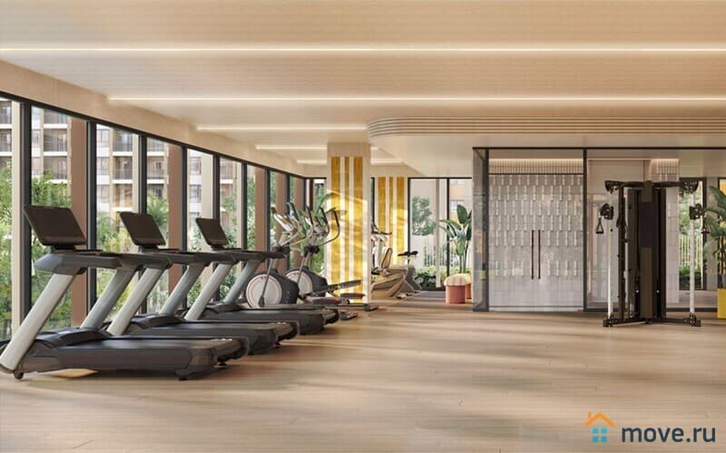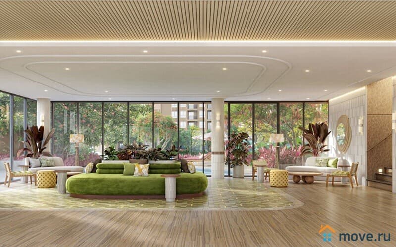 На территории — просторный бассейн с джакузи, фитнес, йога-зона, коворкинг, прачечные, ландшафтные сады и зона отдыха. Безопасность обеспечивается 24/7, есть парковка и EV-зарядки.